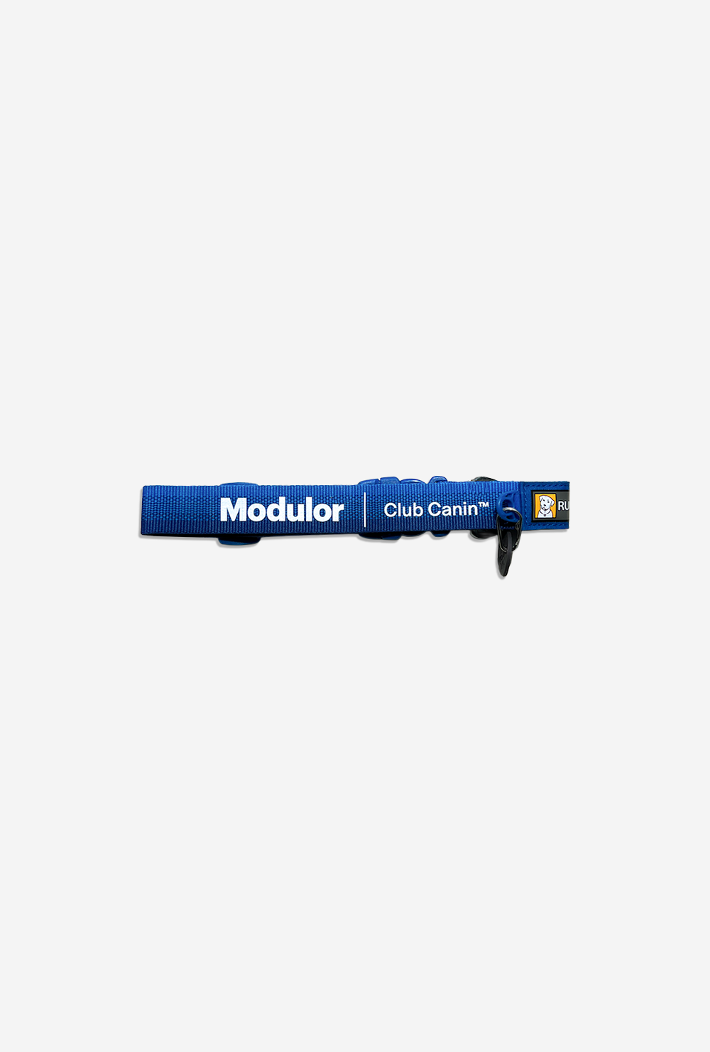 Collier bleu Modulor x Ruffwear, sérigraphié avec le logo Modulor – Club canin. Pensé pour nos compagnons de chantier, de forêt ou de fin de journée. Résistant, ajustable, facile à attacher.