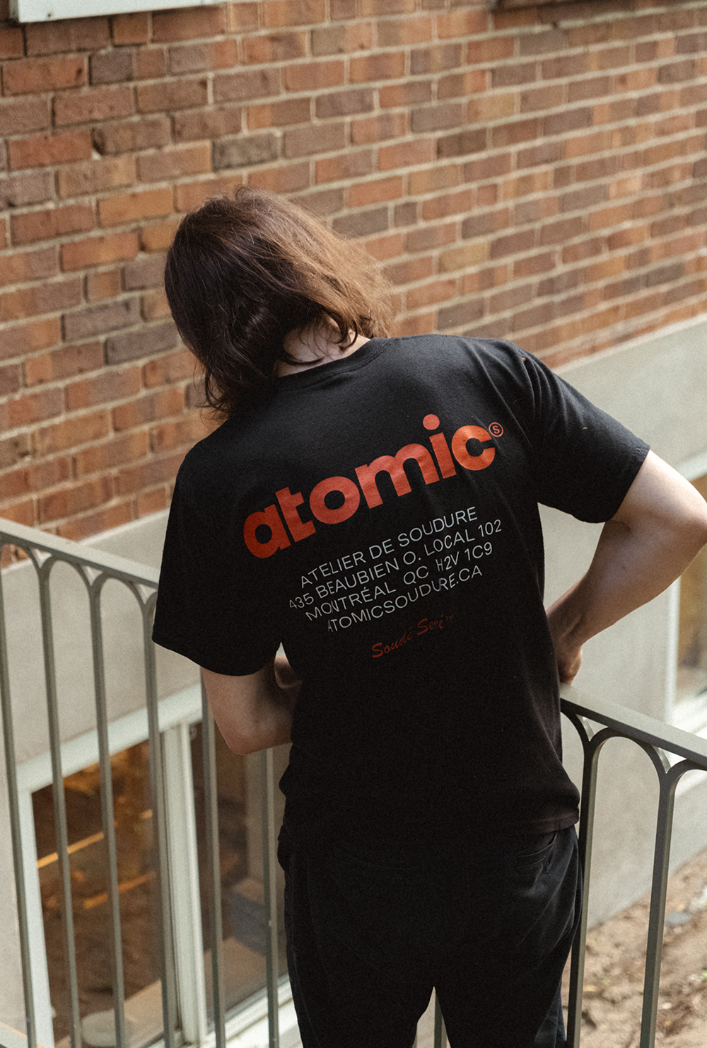 T-shirt officiel avec design Atomic Classique, sérigraphié sur un coton épais et durable. Coupe unisexe confortable, pensée pour être portée autant en atelier qu’en dehors. Un chandail soudé serré.